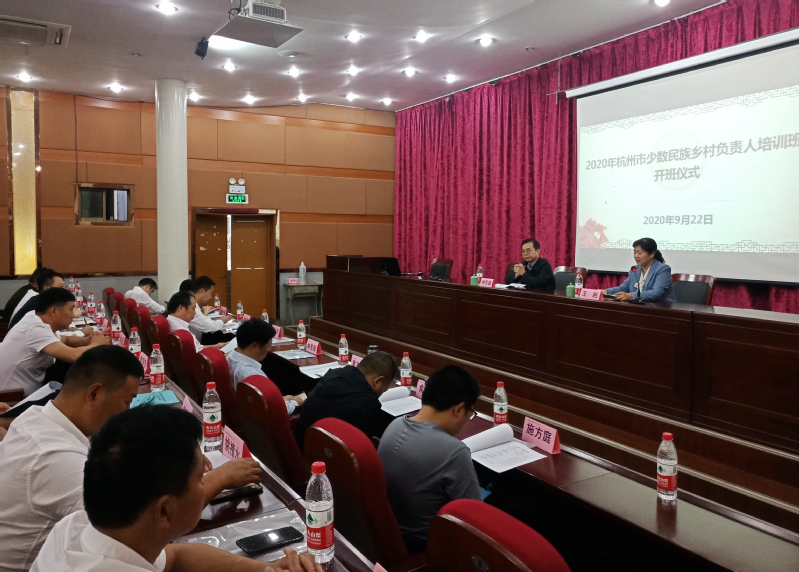 9月22日下午,“2020年度杭州少数民族乡村负责人培训班”开班仪式在学生事务中心一楼会议室举行。杭州市民宗局副局长钟芳源以及我校党委委员、我院党委书记王赳出席并发表开班动员讲话。