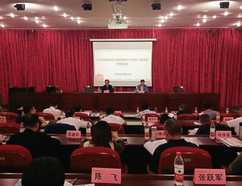 9月22日下午,“2020年度杭州少数民族乡村负责人培训班”开班仪式在学生事务中心一楼会议室举行。杭州市民宗局副局长钟芳源以及我校党委委员、我院党委书记王赳出席并发表开班动员讲话。