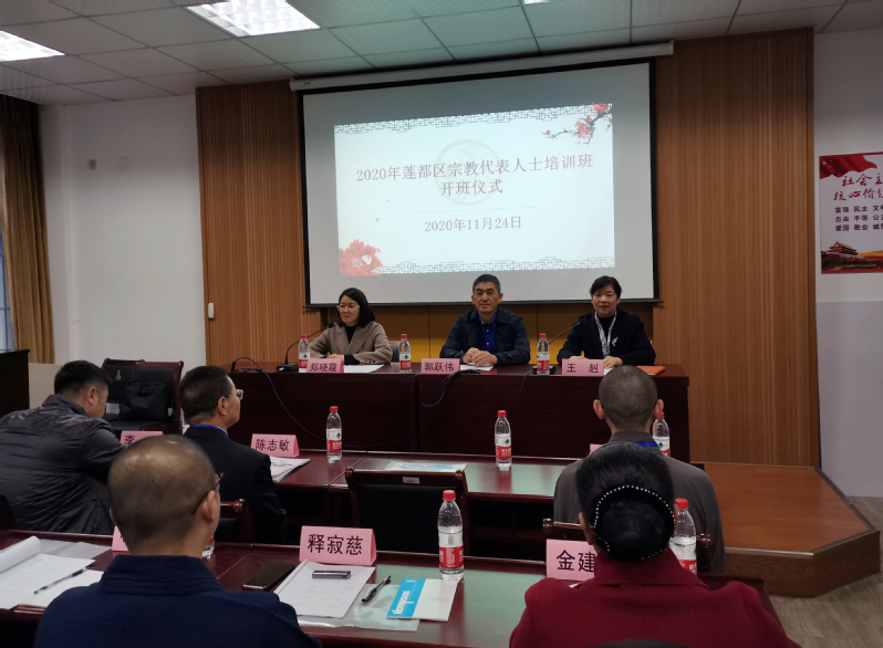 11月24日上午,由中共莲都区委统战部主办、我院承办的“2020年莲都区宗教代表人士培训班”开班仪式在民族学院8A106会议室召开。莲都区委统战部副部长、莲都区工商联党组书记郭跃伟,我校党委委员、我院党委书记兼院长王赳出席动员大会并致辞。开班仪式由我院副院长郑晓霞主持。来自莲都区各街道、宗教协会等五大宗教界代表人士及区委统战、民宗系统干部共计35人参加了此次培训。