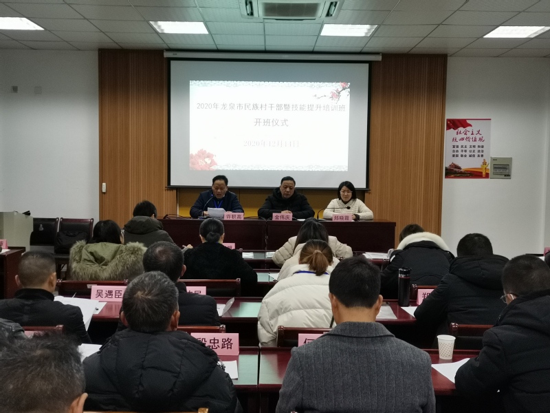 12月14日上午,由龙泉市统战部主办、我院承办的“2020年龙泉市民族村干部暨技能提升培训班”开班仪式在我院8A106会议室召开。丽水市委统战部副部长、民宗局长金伟庆,龙泉市委统战部副部长、民宗局长许积高出席开班动员大会,仪式由我院副院长郑晓霞主持。