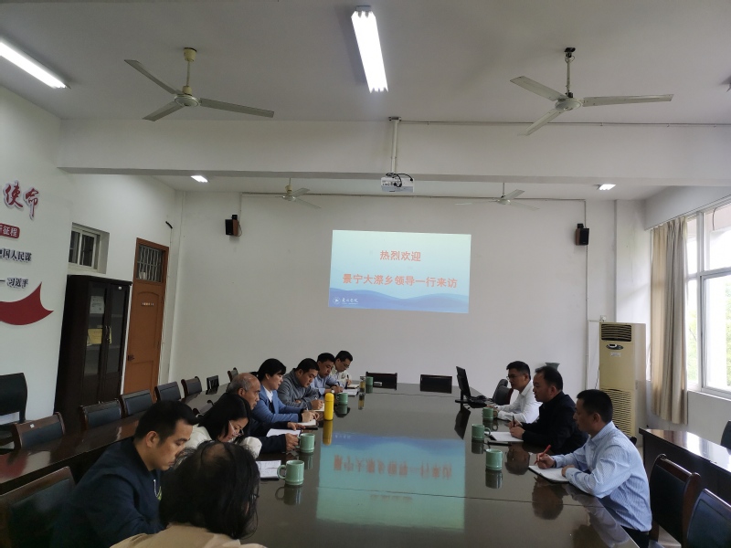 4月6日下午,景宁大漈乡党委书记刘海华、副乡长蓝光平、组织委员林罗宾等一行到我院交流座谈。校党委委员、统战部长、民族学院院长王赳,民族学院党委书记夏更寿出席座谈会。